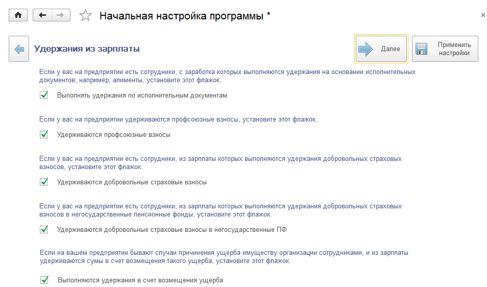 6. Настройки этого шага соответствуют настройке из раздела "Настройка / Расчет зарплаты".