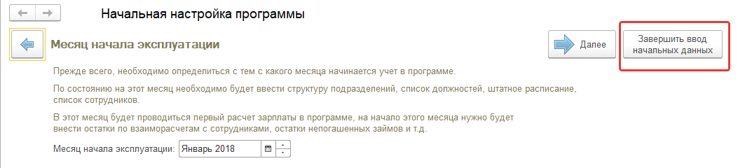 На первом шаге ввода данных предлагается выбрать месяц первого расчета зарплаты в программе.
