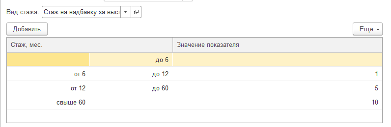 Для примера мы будем использовать стаж на надбавку за выслугу лет.