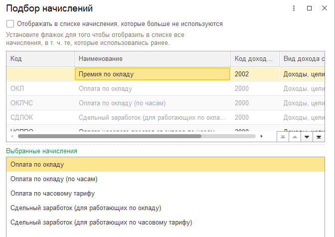 В открывшемся окне добавим двойным кликом левой клавиши мыши соответствующие начисления в состав расчетной базы. В нашем примере – это: