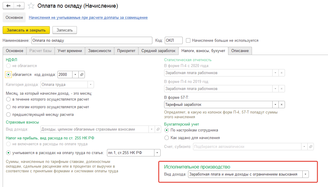 - Заработная плата и иные доходы с ограничением взыскания – код 1;