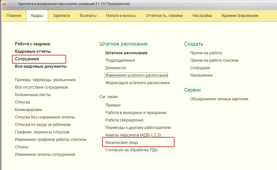 Физическое лицо + Сотрудник (отдельный на каждый трудовой договор)