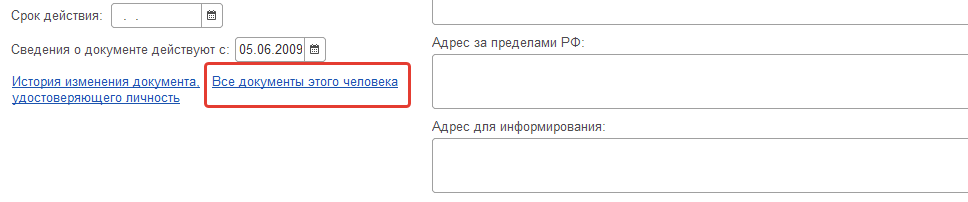 Это будет основной документ, используемый в отчетности. Помимо этого, можно дополнительно вводить и сведения о других документах, перейдя по ссылке "Все документы этого человека".