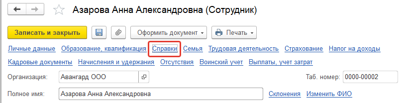 В программе существует возможность вводить сведения о справках, которые сотрудники предоставляются на работу в случаях, предусмотренных законодательством.