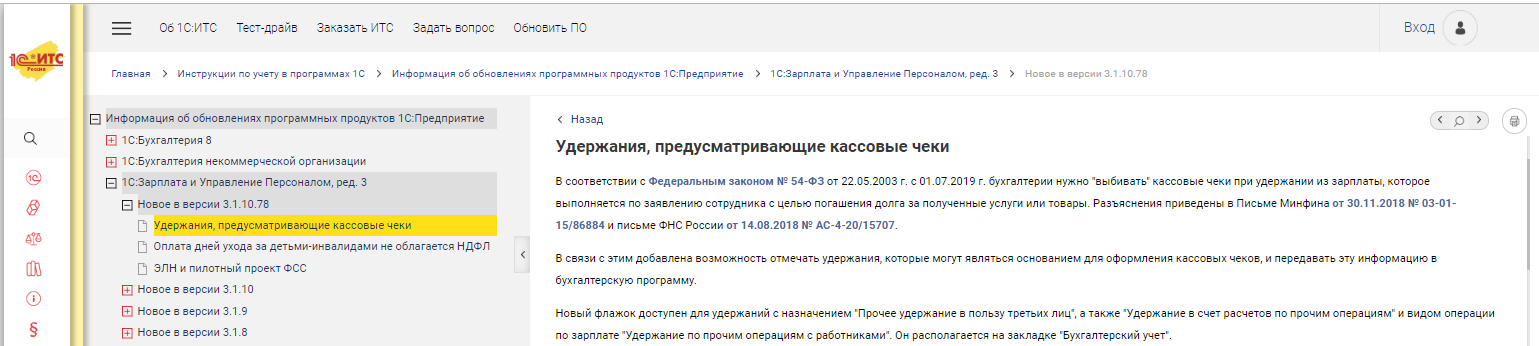 В помощь пользователям программных продуктов фирмы 1С создана Информационная система 1С:ИТС. В ней представлены новости, комментарии и консультации специалистов по вопросам бухгалтерского и кадрового учета, расчета заработной платы, пошаговые инструкции по работе в программе, инструкции по составлению отчетности в ПФР, ФСС и Росстат и отправке отчетности в электронном виде прямо из 1С:Предприятия. Важно, что в информационной системе 1С:ИТС не просто даются методические рекомендации по какому-либо вопросу ведения учета, но и объясняется, как в этом случае действовать в программах 1С. Авторами всех материалов являются разработчики программ "1С:Предприятие", аудиторы и методисты фирмы "1С".