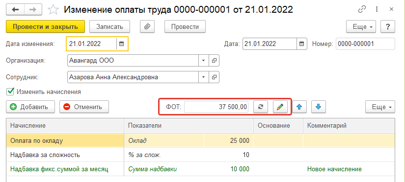 ФОТ, определенный программой, не используется непосредственно при расчете зарплаты сотрудника. Планировать ФОТ следует в случае, если есть потребность в полной мере использовать предоставляемые программой возможности, в которых задействуется размер ФОТ сотрудников: