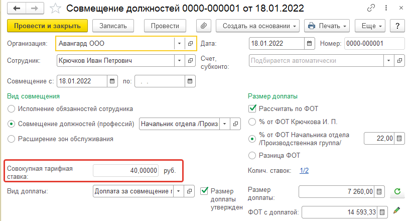 - использовать для определения назначаемого сотруднику размера доплаты за совмещение должностей, исполнение обязанностей (см. документ "Совмещение должностей");