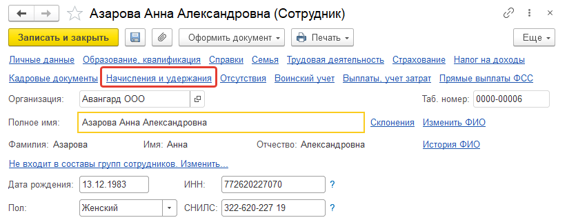 Как видно из примеров выше, постоянные начисления в различных ситуациях можно задавать и корректировать различными документами. Все эти изменения будут отражены при окончательном расчете зарплаты за месяц в документе "Начисление зарплаты и взносов". Проанализировать, как менялись постоянные начисления сотрудника можно различными способами.