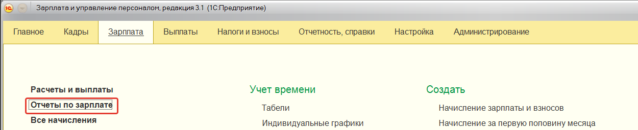 Способ № 3. По общим отчетам, вызываемым в разделе "Зарплата / Отчеты по зарплате".