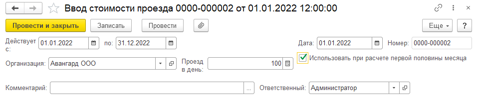- "Компенсация проезда в день" – с 01.01.22 составляет 100 руб. (в день)