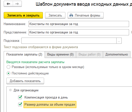 Периодическими (постоянными) называют показатели, значения которых может меняться не каждый месяц, а реже. Для сотрудников такие показатели задаются при назначении начисления в кадровых документах.