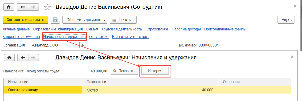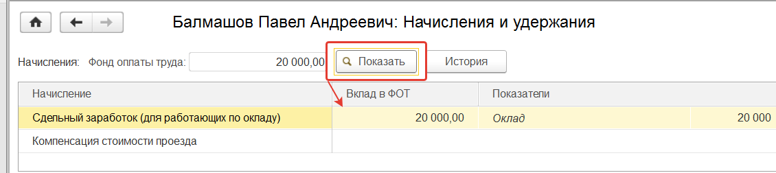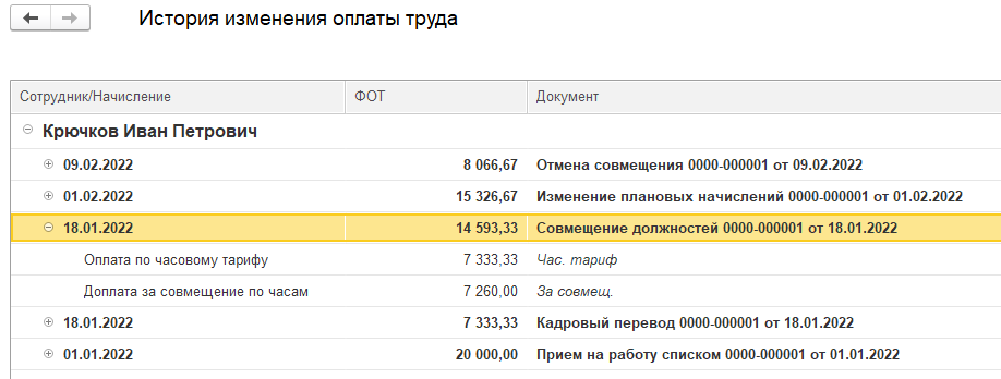 Напомним, что просмотреть ФОТ сотрудника можно в его карточке либо по отчету "История изменения оплаты труда".