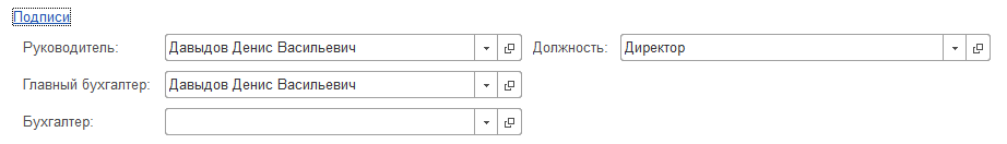 В ведомостях указываются ответственные лица (руководитель и главный бухгалтер) – по ссылке "Подписи".